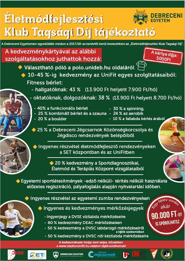 A Debreceni Egyetemen egyedülálló módon a 2017/18-as tanévtől került bevezetésre önkéntes, de mindenki (hallgatók, oktatók, dolgozók, s immáron volt hallgatók és dolgozók) számára felajánlott módon az „Életmódfejlesztési Klub Tagsági Díj”.